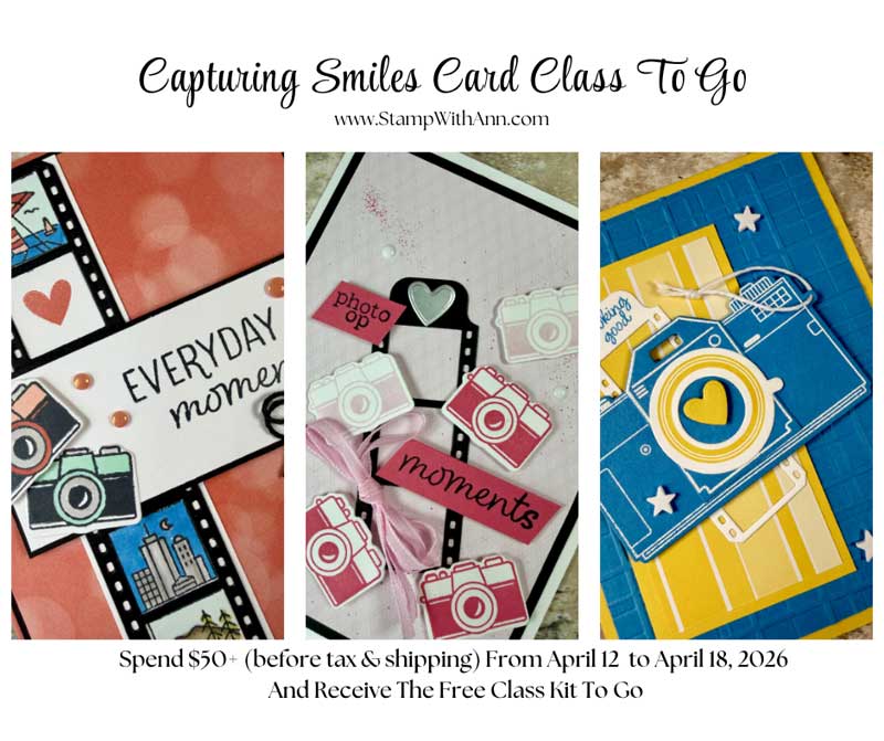 For this week’s Card Class Kit To Go, you’ll need the following items below to complete this project. I am using the Capturing Smiles Bundle. You may want to order these items if you don’t already own them.