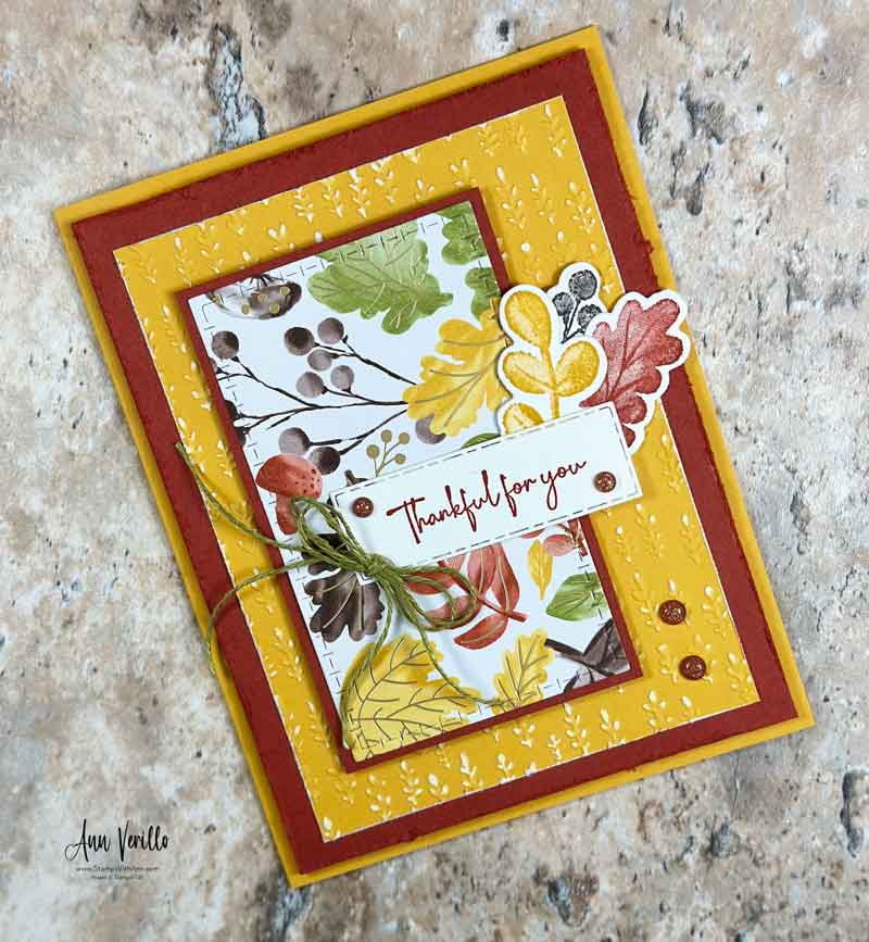 Fall crafting is in full swing, and I couldn’t resist creating this cozy Thanksgiving card for our Team Stamp It Blog Hop! I’m Ann Verillo and you are visiting my blog at Stamp With Ann! In today’s project I used the beautiful Gathering Moments Bundle paired with the Gathering Together Designer Series Paper to capture all the warmth and gratitude this season brings.