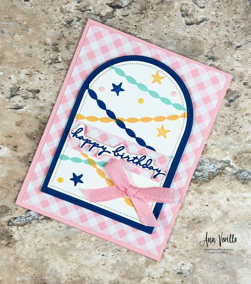 Hello Stampers & Crafters! I’m having fun this week crafting with the Arched Wishes Stamp Set. Today’s card for my Weekly Card Class Kit To Go is full of cheerful birthday charm. I created this fun Arched Wishes Happy Birthday Card!