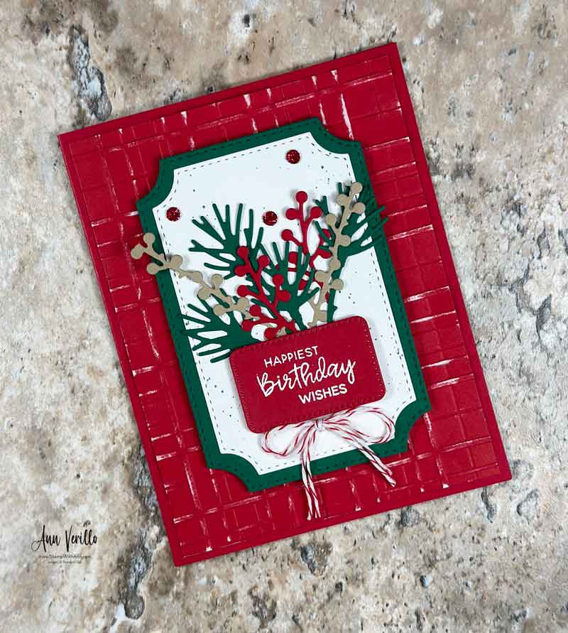 Greetings Stampers & Crafters. I’m back with the second card in this week’s Card Class Kit To Go featuring the beautiful Branching Out Bundle! This card is a festive twist on a birthday greeting, filled with texture, layers, and a pop of holiday-inspired color. Check out my Branching Out Birthday Card!