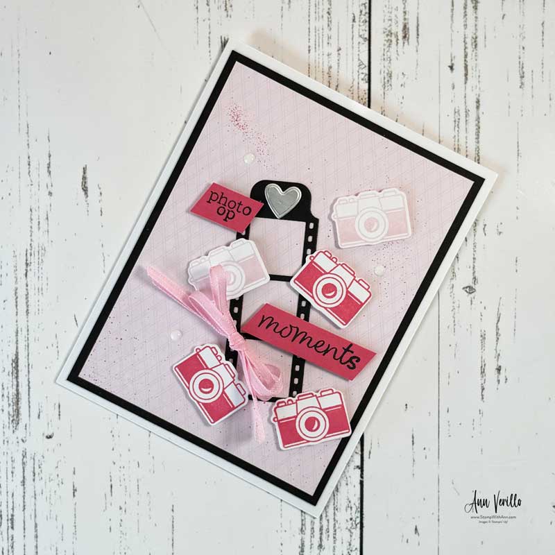 For this design, I paired Strawberry Slush and Bubble Bath with Basic Black to really make those adorable camera images stand out. The result is a playful, modern card that’s perfect for celebrating life’s little moments.