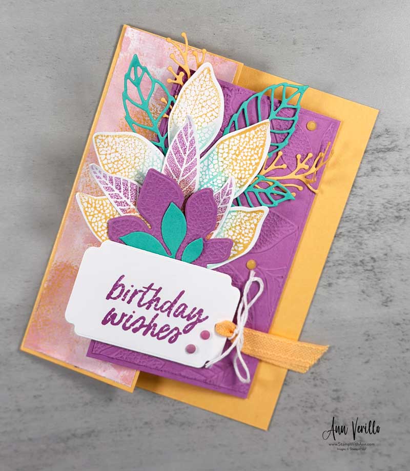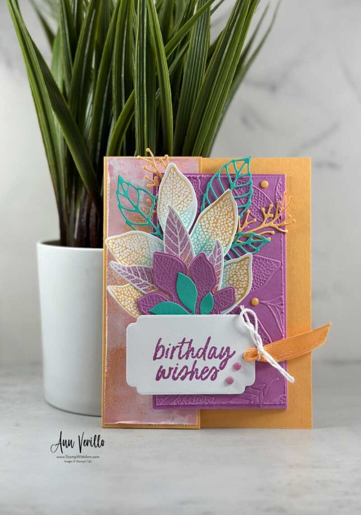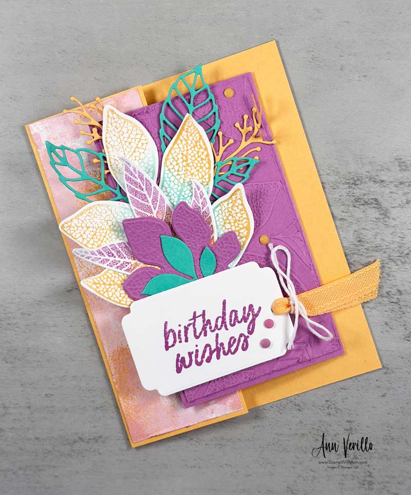 Happy Friday Stampers & Crafters! I’ve been crafting with the Changing Leaves Bundle this week! Today I created this Changing Leaves Fun Fold Birthday Card. I know the bundle is out of stock until September 2nd so I’ve decided to do a little extra die cutting and embossing for those that get my Card Class Kit To Go this week! Yippee!