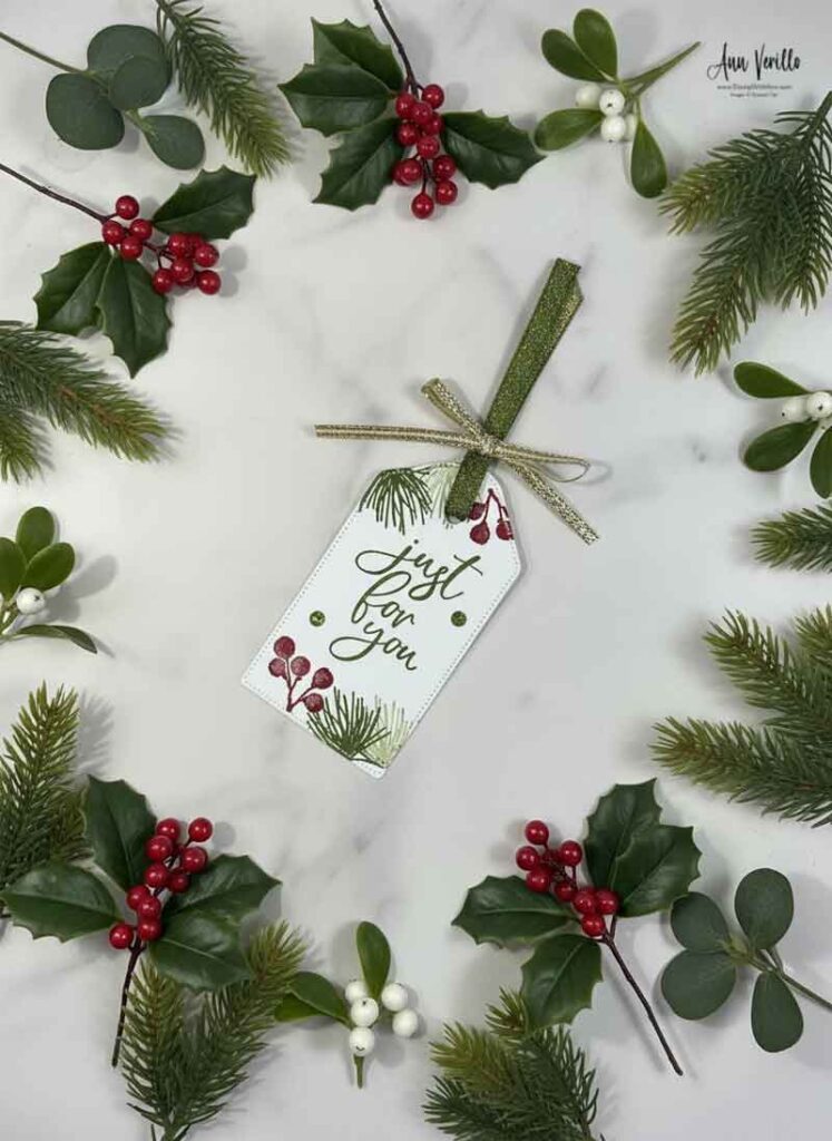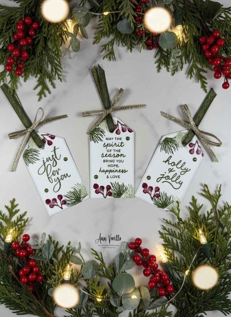 All this week I’ve created fun and festive Christmas Tags for my weekly card class kit to go! Today I’m sharing the first 3 tags. I hope you enjoy these Christmas Greenery Tags.