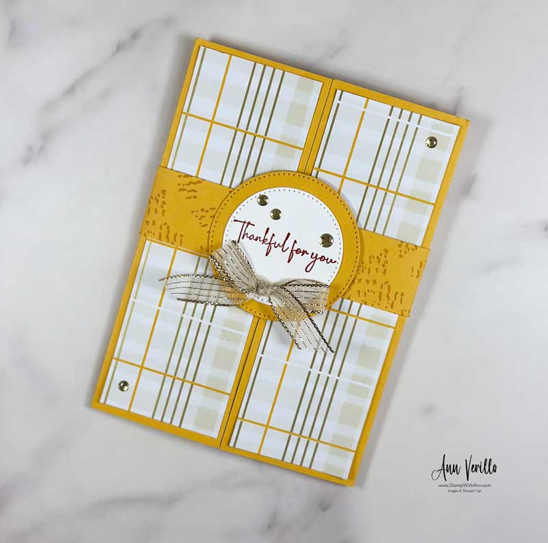 Today I’m sharing the final card in this week’s Card Class To Go featuring the beautiful Gathering Moments Bundle from Stampin’ Up! This week has been all about warm autumn tones, rich seasonal textures, and heartfelt sentiments. And we’re finishing with an easy Pop-Out Fun Fold that delivers a delightful surprise when opened. Check out the details for the Gathering Moments Fun Fold Card.