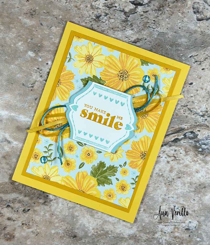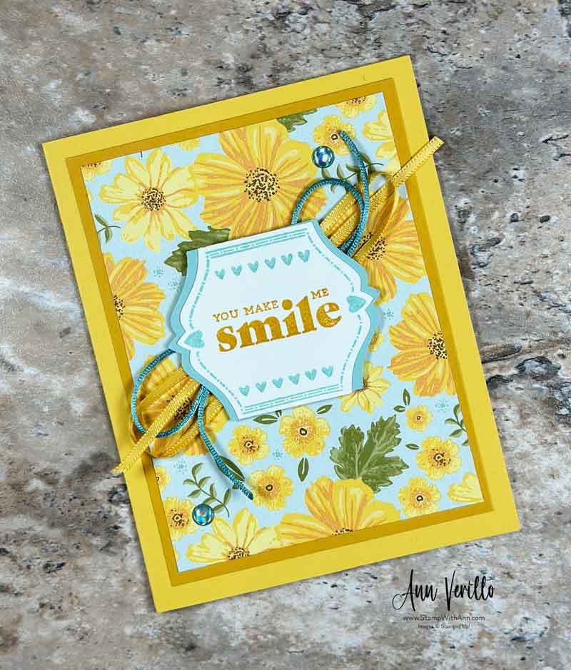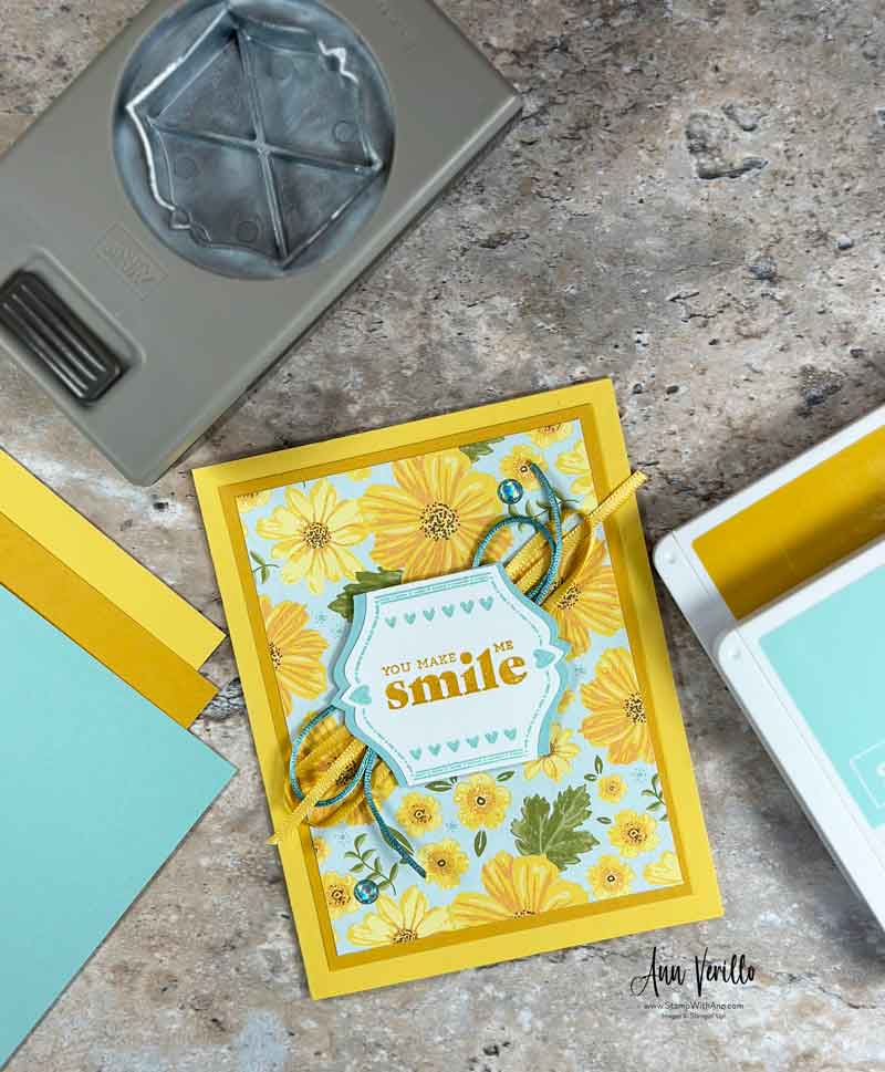 The cheerful color palette of Daffodil Delight, Crushed Curry, and Pool Party makes this card a burst of sunshine!
