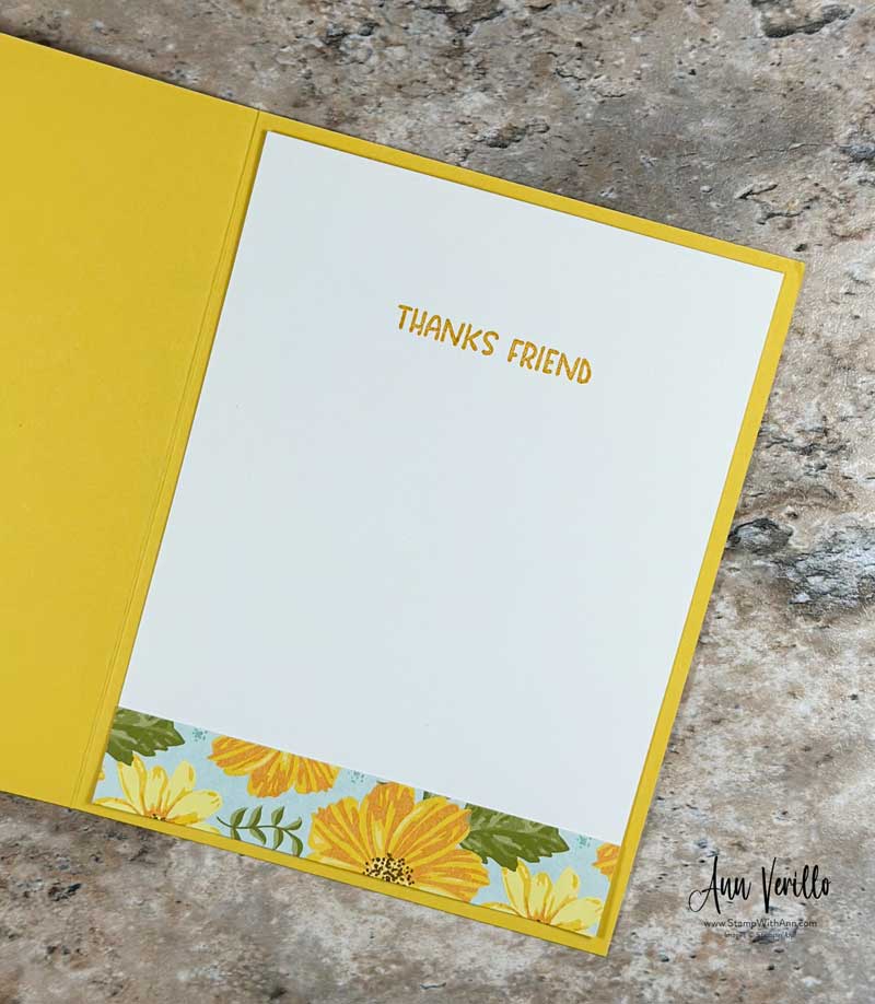 For the inside I stamped the sentiment from the Labeled With Love Stamp Set in Crushed Curry Ink. I added a little strip of the Floral Delight DSP to the bottom to finish it off!
