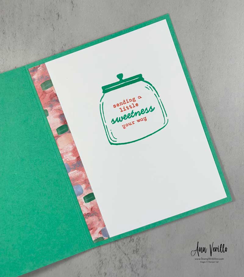 For the inside I stamped the jar again in Shy Shamrock Ink. And I just love the sentiments in this set!