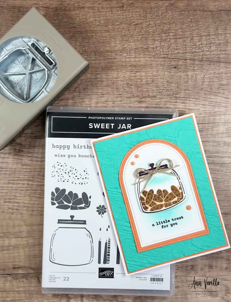 Happy Monday stampers & crafters! All this week I’m featuring the NEW Online Exclusive Sweet Jar Bundle. Today I created this Sweet Jar Treat card. This playful bundle is perfect for adding charm and whimsy to your handmade cards, scrapbook pages, and sweet little notes.