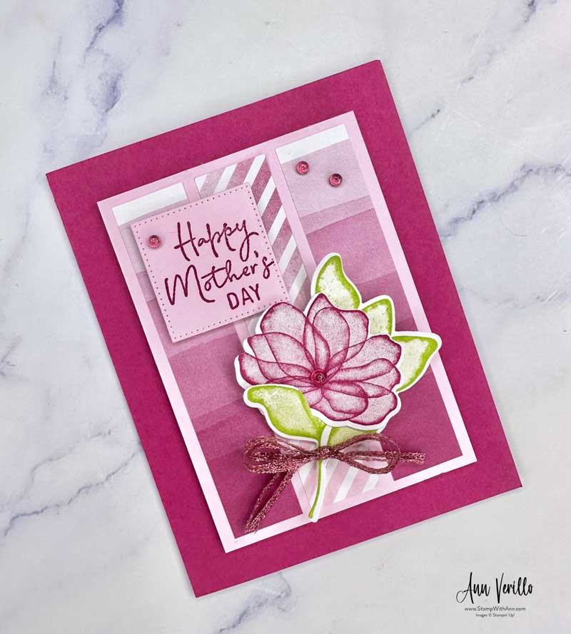 Happy Monday! I hope you all enjoyed your weekend! Can’t believe we are almost at the end of April. I guess time flys when you are having fun. This week I’m crafting and creating with the Translucent Florals Bundle, which is featured for my Weekly Card Class To Go. It’s still being offered as a Bundle until April 30th at $54 which is a 10% savings. Starting May 1st, the Stamp Set and Dies are available separately. So if you don’t have this wonderful bundle pick it up now at a 10% savings! Today I created this Translucent Florals Mother’s Day Card.